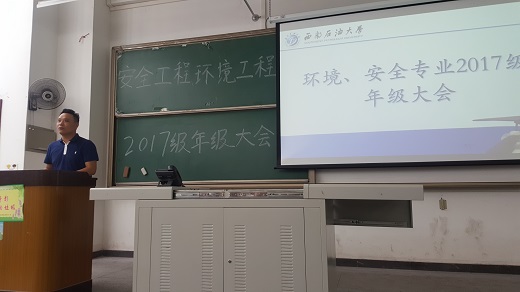 新學期要有新目標,更要有新規劃。學院黨委副書記陳剛在9月2日舉行的環境工程與安全工程2017級年級大會上,向同學們提出了4點希望:第一,積極調整,及早收心。他希望同學們能夠認真總結上一學年的經驗與不足,積極調整自我的狀態,查漏補缺。第二,明確目標,合理規劃。他談到,經過一年的學習,同學們對專業有了較多認識,應做好學業規劃,用實際行動踐行理想,并利用課余時間提高自己的綜合能力。第三,強化自律,服從管理。他希望每位同學都嚴格要求自己,按時上課,不遲到、不早退、不曠課,模范遵守校紀校規,共同維護良好教學秩序,創建優良學風。第四,牢記安全,明辨是非。他強調,寢室內要注意安全用電,進入實驗室要規范操作,注意防火防盜防詐騙,同時要有責任感、勇擔當,不傳播虛假信息,不轉發非法信息, 自覺抵制網絡不良信息。