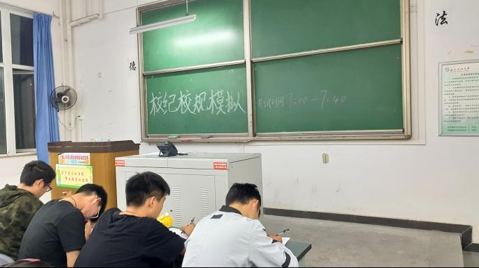 此次考試重點加強對新生的校規(guī)校紀教育,樹立學生的紀律意識、制度意識,加強我院學生學習的自覺性,營造良好的學習氛圍,杜絕違規(guī)違紀的現(xiàn)象。并讓新生更快地熟悉校園生活,了解學校的相關(guān)規(guī)章制度,更好地融入新的校園生活,為其以后的學習生活打下基礎(chǔ)。來自18級環(huán)境專業(yè)的朱瑋說到:“有了這一次的模擬考,讓我們更有信心通過兩天后的正式考試了,此次模擬考非常有意義。” (文/尹露 圖/羅銀川、潘樹銘)