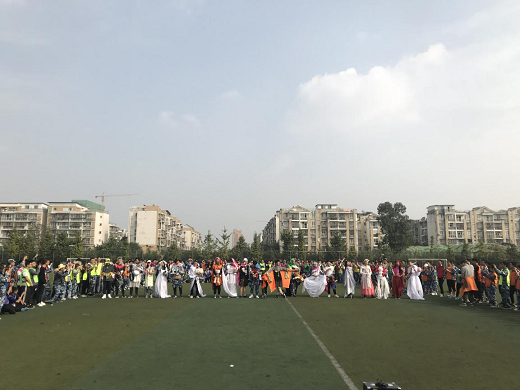 在激情速拍環節,根據完成時間的成績,各小組依次選取了不同的任務單。各組分別有15項任務,如“挖蚯蚓”、“找雙色樹葉”、“1980年紙幣”等。最令同學們“打腦殼”的任務就是選擇一人為模特并對他進行化妝打扮,在準備時間結束后進行走秀表演。各小組八仙過海各顯神通,紛紛利用周圍一切可以利用的道具為本組模特進行裝扮,為大家上演了一場別開生面的“新生show”。這場走秀的成功演出,需要的是每一位小組成員的付出,考驗的是集體的團結能力。