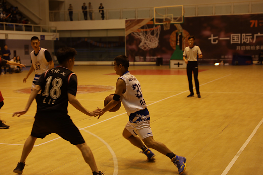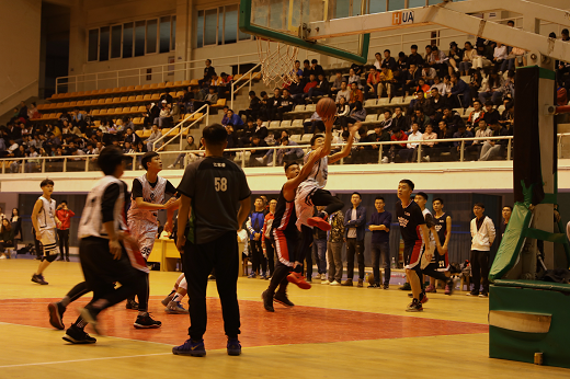 接著是大家期待已久的冠軍爭奪賽,15化工對戰15環境。比賽開始前雙方球員就在各自隊長帶領下進行熱身,雙方球員中既有來自校籃球隊的后衛王浩,也有來自院籃球隊的主力隊員鄭力中、楊松林等,可謂是一場高水平的較量。哨聲一響,雙方球員就展現出了極強的求勝欲望,15化工的王浩多次帶球快攻上籃得分,15環境的隊員們則依靠著內線身高優勢緊追不舍,比分多次僅相差1分,一時雙方難分高下。隨著比賽如火如荼的進行,場內觀眾亦是看的激情四射,雙方啦啦隊的加油吶喊聲此起彼伏,好似也在進行一場對戰。第三節結束雙方得分僅相差5分。
