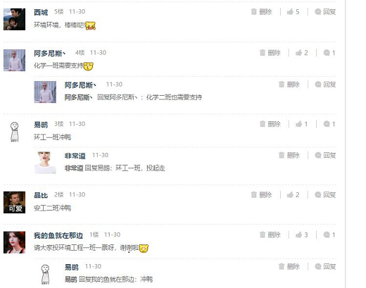 圖:部分易班投票評論