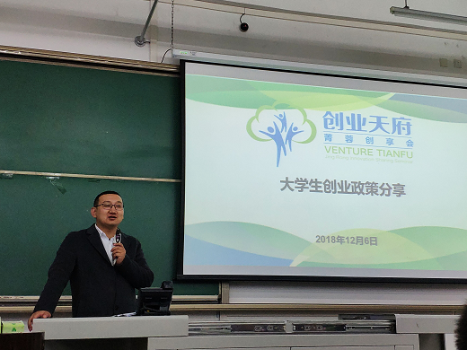 為了啟發學生創新思維,培養學生的創業精神,讓同學們了解當前形勢下的創業政策并給予同學們創業指導,12月6日晚上,化工院在明德樓A312舉辦當前形勢下創業政策及創業指導講座,邀請到學校創新創業導師丁龍主講。