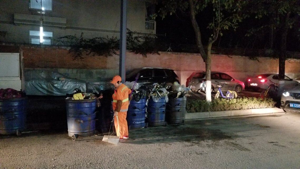 早晨六點半,小組成員在學校后門集合,此時環衛工人已經開始了忙碌的一天。負責后門片區的李阿姨為了不打擾旁邊宿舍樓學生的休息,掃垃圾的聲音都很輕緩,她一邊工作一邊給我們介紹說:“整個校園的垃圾,一天估計有7噸,在清理垃圾時,很少發現有學生對垃圾先進行分類再扔,大部分同學只是將垃圾混裝在一個塑料袋里,然后直接扔進垃圾桶。我們一般是把垃圾集中收集起來,運到垃圾站再由垃圾站的工作人員進行分類,工作量大。如果學生可以先自行分類,就可以減輕一些工作量,提高垃圾的處理效率。”