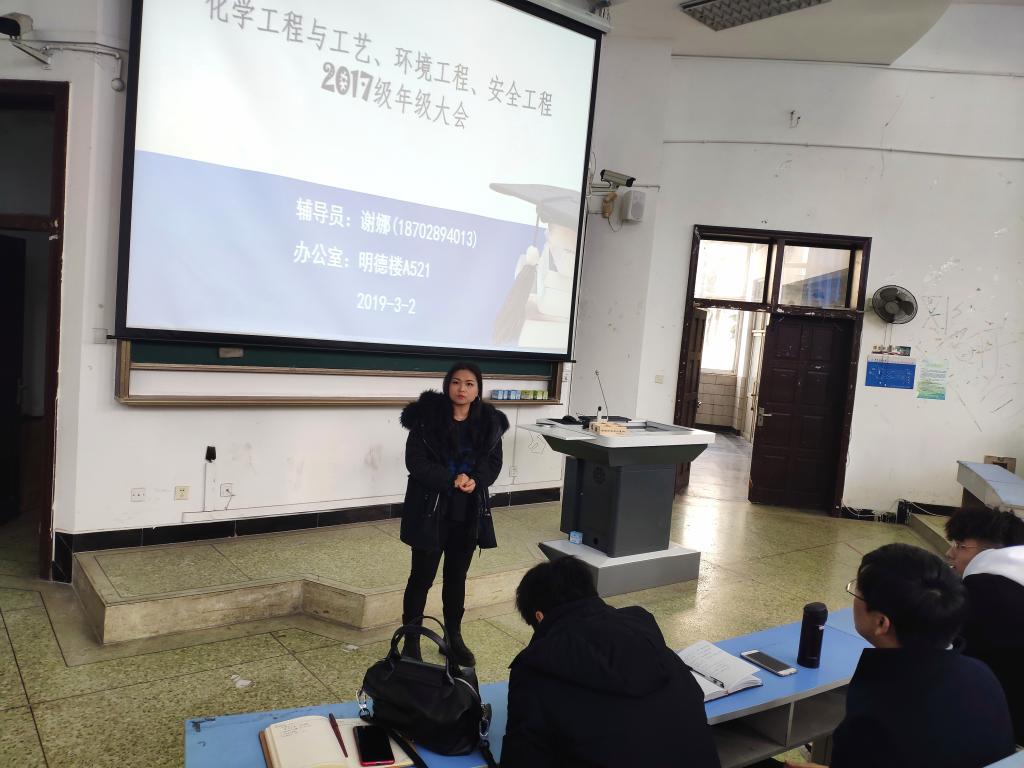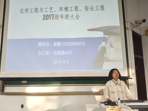 在年級大會上謝娜對環境工程、化學工程與工藝、安全工程三個專業的成績作了分析,并對學分績點高于4.0的學生進行表揚。針對掛科學生,謝娜老師提醒大家不要松懈要努力學習,另外謝娜老師還要求入黨積極分子優秀成績的同學一對一或者一對二輔導掛科同學。除此之外,她還對三個專業的英語四六級、計算機二級過關率進行分析。最后,她對學生在考研方面的疑惑進行解答,列舉2020年的考研重要時間安排表,并提出考研對我們化工院每個專業學生都有重要意義。