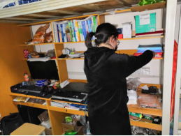 圖2 女生生活委員在男生寢室督促整改