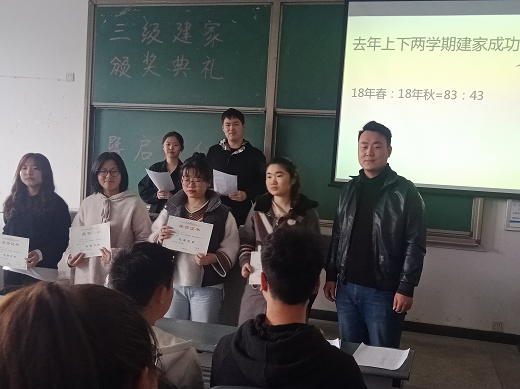 儀式開始,和晉為2018-2019學年秋季學期合格之家與優秀之家建家成功的寢室頒發了榮譽證書,并與同學們就寢室文化建設的重要性進行了交流。他說到,寢室是大學生成長學習的重要場所,學院持續開展三級建家活動是為了引導同學們養成講文明、講衛生、守紀律的良好習慣,培養大家文明、健康的生活方式,促進良好寢室學習氛圍的養成。他希望每個寢室都能踴躍參與進來,在遵守學校規章制度的前提下提升生活品質,杜絕使用大功率電器,共建文明寢室。同時,和晉指出各班生活委員應肩負督促管理班級同學寢室內務的重任,增強自我認同感,帶動同學們養成良好的學習及生活習慣。