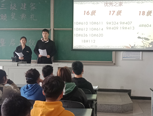 最后,主持人為同學們講解了學院三級建家的報名流程、實施細則和創建標準,主要包括內務衛生、行為禮儀、人際交往、學習方面等方面的要求,鼓勵同學們要積極參加活動,爭取在活動中建家成功。(文/王宇琦 圖/張冬梅)