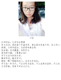學習能力固然重要,而獨樹一幟的她成了寢室特別的存在,積極樂觀、活潑開朗的性格被室友們尊稱玲姐。在寢室是玲姐的盧玲,在學院她還是化學協會的理事,盧玲的身影總會積極投入到各項活動當中,為學院學生工作的順利開展助力,一直以來毫無怨言,絕對是學弟學妹們的好榜樣。