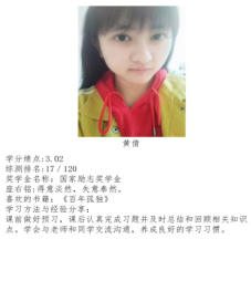 一個人的潛能是無限的,學課本上的知識,只是大學成長的基礎,而要在這個基礎上建高樓看到更美的風景,就要去挑戰不同的領域,可以發揮優勢,也可以打開新大門。“大學之大,在乎我能從各個方面吸收學之精華。”黃倩總結到。