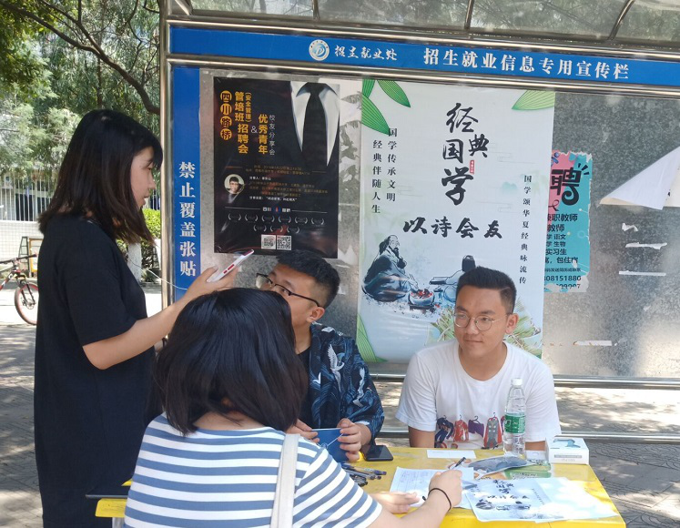 為進一步弘揚民族傳統,傳承國學經典文化,營造濃郁的書香氛圍,提升大學生文化素質,提高大學生文化自信,化工院大學生文化素質提升小組于2019年6月5日在一食堂門口舉辦了“經典詠流傳·國學頌華夏”的文化素質提升活動。