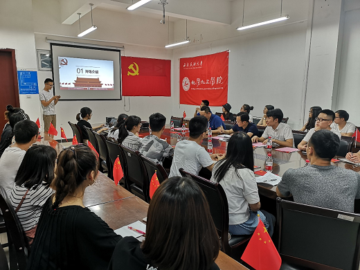 活動伊始,全體黨員一起觀看了短片《我們的自信-文化篇》,從中華文明的發展史中感受中華優秀傳統文化的厚重。接下來,孫靈等四位同學誦讀了經典詩篇《離騷》節選,與大家共同品味傳統文化的優雅與魅力。緊接著,陳家瑋等四位同學結合PPT展示依次分享了小組學習內容,就“中華民族傳統節日的由來與發展”、“青年黨員如何更好地傳承與弘揚傳統文化”等問題表達了自己的觀點。活動現場,大家踴躍發言,其中2018級碩士王遠結合新都民族英雄王銘章、明代才子楊升庵的生平事跡,號召廣大學生黨員多多參觀文化古跡,感受并傳承先輩精神。活動中,此次新發展黨員王宇琪、甘冬等五位同學在黨旗下進行莊嚴宣誓。