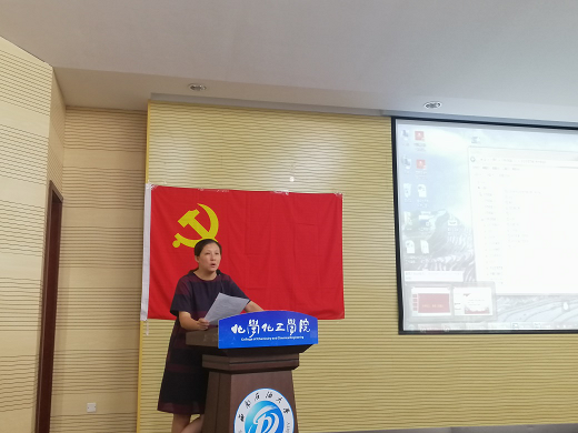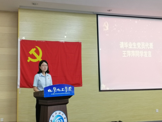會議伊始,全體參會人員齊唱《國際歌》。隨后,陳剛帶領學院新黨員宣誓,老黨員重溫誓詞。宣誓儀式后,余亞蘭作為教師黨員教師代表發言,她首先對所有畢業生表達了祝愿,并希望他們在今后的人生道路中,時刻銘記黨員的身份,做一名合格的黨員,一步一個腳印,不斷提升黨性修養。隨后,王萍萍作為畢業生黨員代表發言,她指出我們應時刻保持一份追求卓越,勇于創新的態度,不斷提升對自我的要求,積極主動作為,爭當模范,充分發揮黨員的帶動作用。接下來,新發展黨員、化學工程與工藝2017級馮雪飛同學作為代表發言,她講述了自己在學習進步過程中對黨的深切熱愛和熱烈擁護,并表示今后將更加嚴格的要求自己,積極發揮黨員榜樣意識,服務同學、發揮先鋒作用。