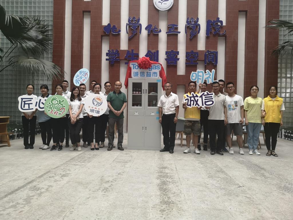 2019年7月2日14:30,西南石油大學(xué)化學(xué)化工學(xué)院部分領(lǐng)導(dǎo)及學(xué)生與新都港華燃氣公司部分高層及員工們一起在思學(xué)樓A114報告廳舉行了“Towngas誠信超市”揭牌儀式。此次會議旨在提倡同學(xué)們樹立誠信的良好品質(zhì),在生活中堅持“以誠為本”,養(yǎng)成講誠信的好習(xí)慣。