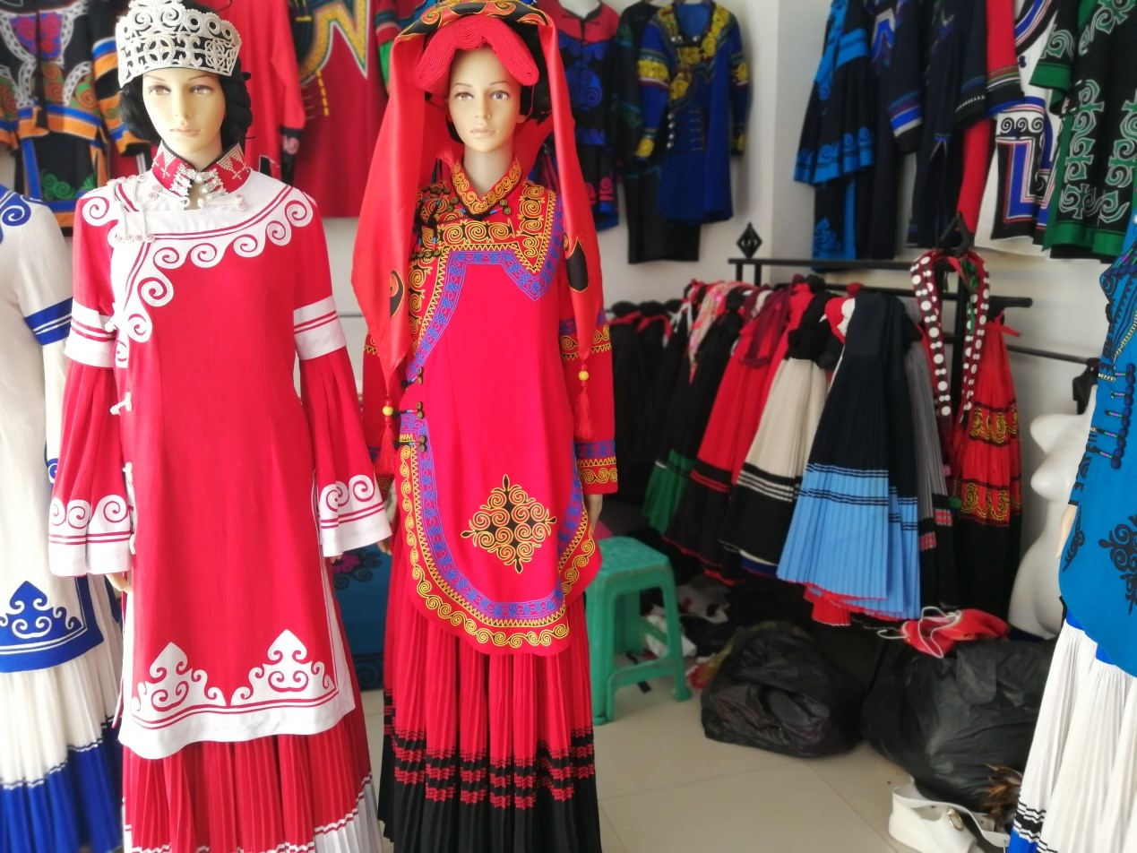 在銷(xiāo)售方面,由于制作一件服飾需要的時(shí)間和精力較多,導(dǎo)致彝族服飾的價(jià)格較高。一個(gè)普通的當(dāng)?shù)鼐用瘢粫?huì)給自己買(mǎi)一到二套傳統(tǒng)服飾。和現(xiàn)代服裝相比,彝族服裝的銷(xiāo)量少了很多,據(jù)店家透露,平均下來(lái)傳統(tǒng)服飾一個(gè)月一般就能賣(mài)出2到3件。