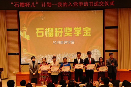 曹正與牟卿為獲獎學生頒發“石榴籽”獎學金