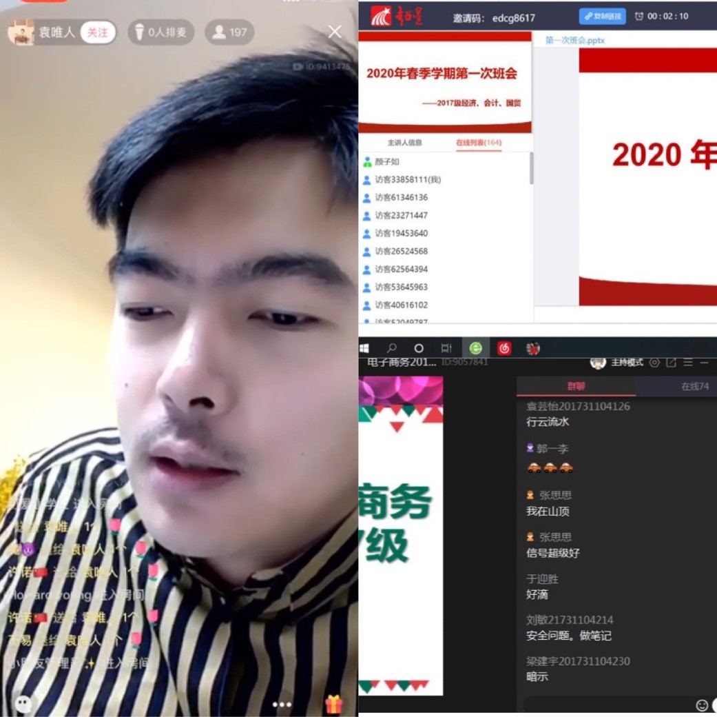 袁唯人通過QQ直播間向同學們強調,各位同學應按照學校的總體要求,做好居家隔離工作,無特殊情況盡量減少外出,在學校未通知具體返校時間前不得私自返校。此次線上教學是教學空間與教學方式的雙重調整,對于老師以及各位同學來說都是極大的挑戰。袁唯人希望同學們努力克服線上教學期間的困難,積極配合任課教師的工作,遇到困難及時向老師反饋。老師將盡最大的努力為各位同學提供幫助,及時解決各種實際問題,提高同學們的學習效率。