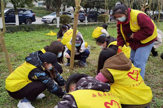 為提高經管學子的感恩意識、弘揚奉獻精神,讓同學們切實體會到勞動帶來的充實感,12月10日下午,經管院六十名獲得獎助學金的貧困學生聚集在學子林,開展了“志愿石大·旗幟”感恩學子林維護志愿服務活動。