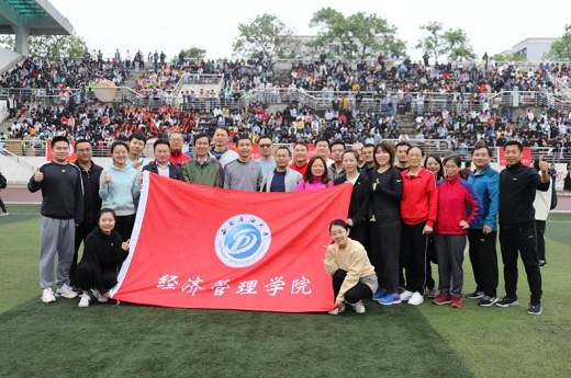 隨著一聲槍響,五十米迎面接力跑比賽拉開帷幕。老師們手里緊握著接力棒,鉚足力氣,盡力向前沖去。接力棒傳遞著學(xué)院老師們拼搏奮進的信念、力爭上游的決心。賽場之外,其余老師和經(jīng)管學(xué)子組成了聲勢浩大的拉拉隊。他們不僅為參賽選手加油打氣,也為他們提供后勤保障。