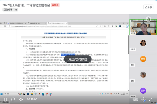 為貫徹落實(shí)國(guó)家、學(xué)校獎(jiǎng)助學(xué)金資助政策,讓同學(xué)們更加清晰地了解各項(xiàng)相關(guān)工作流程,我校經(jīng)管院2022級(jí)工商管理、市場(chǎng)營(yíng)銷專業(yè)于2023年9月27日晚在飛書會(huì)議召開了獎(jiǎng)助學(xué)金政策宣傳解讀會(huì)。本次班會(huì)由輔導(dǎo)員冉玉嘉主持,兩專業(yè)同學(xué)全體參與。