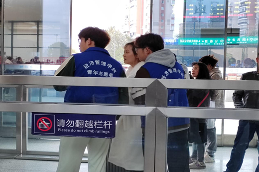 活動開始前,同學們積極服從負責人安排并迅速進入工作狀態。本次活動同學們主要從了解高鐵站的購票和乘車程序、指導乘客購票進站、幫助部分乘客搬運行李等勞動教育方面開展工作。在活動過程中,同學們身著藍色馬甲,保持著極大的勞動熱情,團結一心、認真踏實地完成工作,成為了車站里特別的風景,展現了大學生的良好風貌。