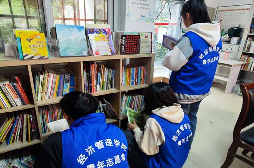 活動開始前,負責人帶領同學們熟悉流程并做好準備工作。本次活動同學們對小屋進行了故事小屋的打掃工作,對圖書進行了整理工作,同參與活動的小朋友進行圖書分享和手工制作,提升了大家的動手能力。