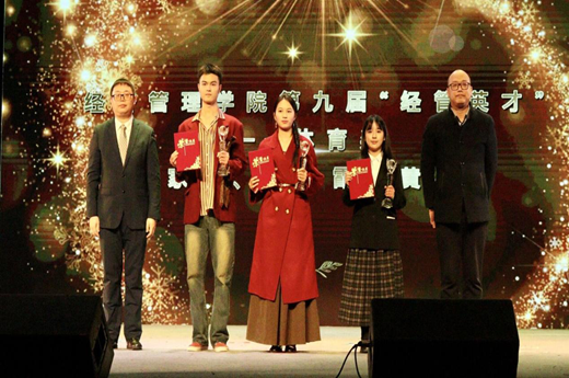 12月17日下午,我校經濟管理學院第九屆“經管英才”頒獎典禮在藝術大樓201隆重舉行。學校相關部門領導、特邀頒獎嘉賓、學院領導班子成員、教研室主任、部分教師和輔導員以及各年級學生代表參加了頒獎典禮。