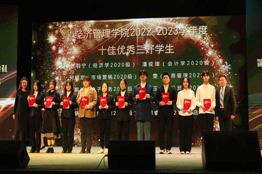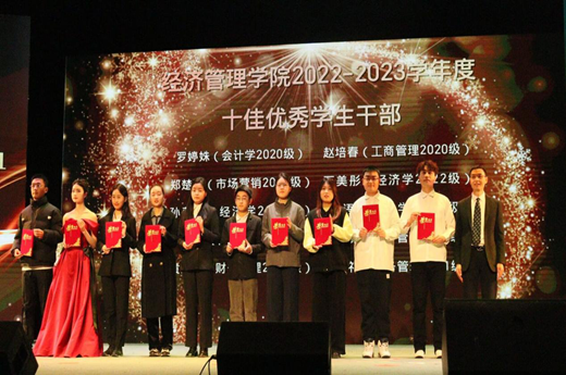 學校相關部門領導、特邀頒獎嘉賓為獲獎個人和團隊頒獎,學院領導分別為經管院石榴籽獎學金、2022-2023學年度“十佳班級”“十佳優秀三好學生”“十佳優秀學生干部”等的獲得者頒獎,學院師生表演了歌曲、舞蹈、朗誦、小品等精彩節目。