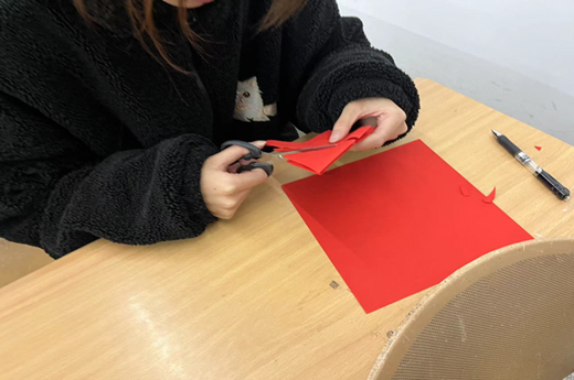 活動(dòng)正式開(kāi)始,伴隨著剪刀的清脆聲響,同學(xué)們沉浸在別具魅力的剪紙創(chuàng)作之中,一把剪刀,一雙巧手,一片小小的紅紙便在同學(xué)們飛舞的剪刀下浮現(xiàn)出各種優(yōu)美的圖案,靈巧精致的雪花、象征吉祥的福字……每種圖案都肆意展現(xiàn)著剪紙包羅萬(wàn)象的美感。