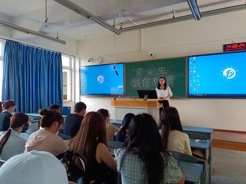 5月27日,經管院輔導員袁桔在博學樓B302對進行了助學貸款的2024屆畢業生開展了誠信還貸主題教育。