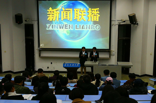 1月16日晚,第九屆“經話筒”主持人大賽決賽在思學樓B110舉行,學院團委書記劉波、輔導員袁唯人、學生會主席龍坤、第六屆經話筒冠軍魯婭珺等擔任評委。