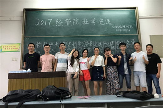 9月13日 下午,經管院2017級碩士研究生新生在博學樓B302教室舉行了新一屆班委競選的工作。本次競選由學院兼職輔導員杜荷花擔任主持人。輔導員劉波出席了本次活動。