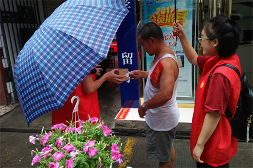 在接下來的環節里,實踐隊通過有獎問答的方式向居民進行宣講,環保行為應當從身邊做起,比如:選擇環保袋購物、低碳出行、舊電池回收以及垃圾分類等行為。由于本次的活動對象基本都是社區里的老年人,實踐隊采取了由志愿者提問然后居民回答,再由志愿者幫助填寫這樣的方式。這種做法不僅有利于志愿者能更加直接了解社區的環保情況,而且還加強了志愿者與社區居民的溝通,緩解了陌生緊張的氣氛。在社區居民的積極配合下,隊員們都很好的完成了任務并將環保理念更加深入了人心。