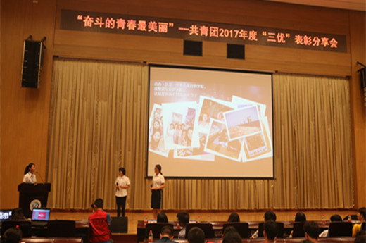 5月3日下午,我校于圖書館報(bào)告廳舉行共青團(tuán)2017年度三優(yōu)表彰大會(huì),校團(tuán)委一行、各學(xué)院黨委副書記、團(tuán)委書記,我院2016級(jí)公共事業(yè)管理全體同學(xué)參加此次活動(dòng)。