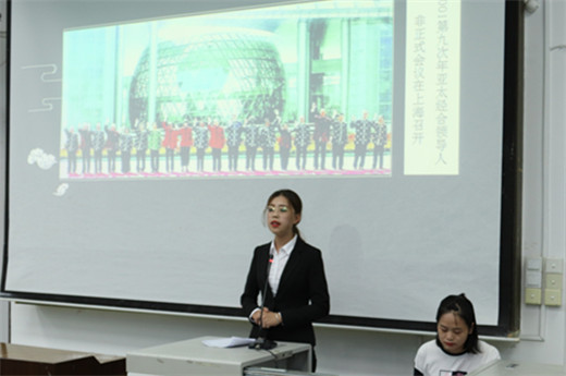 從漢服的起源到現如今的發展,從不同的種類到其他民族的借鑒,2017級公共事業管理的王文君將漢民族傳統服飾的文化知識向我們娓娓道來。她將上衣下裳、深衣制、襦裙制、韓服、和服的來源以圖片解說的形式,加強同學們對漢服的更深層次認識。“喜歡漢服,明白漢服深厚的文化底蘊,才能升起強烈的民族自豪感。從而響應習近平總書記的號召深入挖掘中國傳統文化,實現中華文化復興。”王文君說。