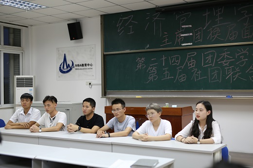 晚上七點,十二位主席團候選人開始進行面試,曾有為、劉波、周游及學院各輔導員擔任面試評委。本次面試將候選人分為兩組,采取評委提問、候選人回答的形式。通過溝通互動,傾聽或陳述觀點,評委考察了各候選人的思辨能力。