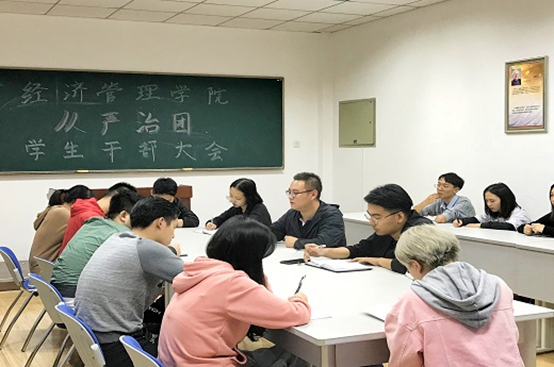 為引導經濟管理學院學生干部重視學生組織紀律性,名副其實地做好學生會社團聯的好干部、好團員。10月12日晚,經管院于博學樓B503召開“從嚴治團”學生干部大會。團委副書記袁唯人主持會議,團委書記劉波出席會議并講話,學生會社團聯主席部長代表參加了會議。