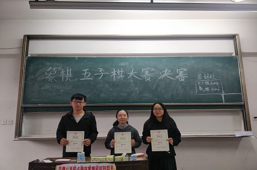 決賽階段,棋手通過抽簽隨機匹配對手,面對棋盤,他們認真分析,思考自己的棋路,在楚河漢界中敵進我退,敵守我攻。棋手馮文杰與王夢飛的對局過程持續(xù)了近兩個小時,最終馮文杰取得了比賽勝利。本次比賽棋手本著“切磋棋藝,以棋會友”的原則,秉承”友誼第一,比賽第二”的精神,充分體現(xiàn)了我院學生“在競技中切磋,在比賽中收獲”優(yōu)良風貌。增強學院的文化氛圍的同時給棋藝愛好者一個發(fā)揮自己特長,展示個人棋藝的平臺。最終,五子棋組康蘋同學取得第一名、曾逸艷同學取得第二名,劉華建同學取得第三名;象棋組馮文杰、王夢飛、代仕三名同學分獲一二三名。