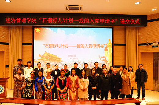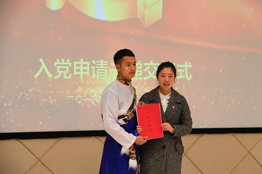 2018年11月21日晚,一場特殊的入黨申請書遞交儀式在西南石油大學思學樓A114進行。遞交儀式上, 7名少數民族同學在深情講述自己的成長經歷與黨和祖國的關系,鄭重地向黨組織提交了自己的入黨申請。經管院黨委書記黨劉栓、學校黨委組織部副部長張鳳、黨委宣傳部統戰部副部長曹正、學生工作部(研究生工作部)(處)副部長張浩、校團委副書記張維、經管院黨委副書記曾有為參加了本次活動。
