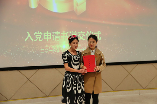 阿迪拉·圖爾洪是經濟管理學院經濟學專業2017級維吾爾族學生。她從小就是在黨和政府的支持下才有上學的機會,進入大學后,同專業的李婷婷受學校石榴籽計劃的安排對她進行一對一學業幫扶,幫助她順利通過了高數和VB課程,看到李婷婷同學被發展為預備黨員后,阿迪拉也向黨組織提出了自己的入黨申請,希望在黨組織的關心培養下,成長成為一位對社會有更大貢獻中共黨員。