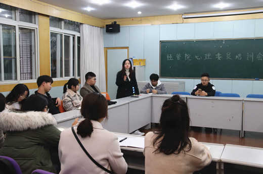 3月15日,經管院于博學樓心理團體輔導室開展心理委員培訓會,培訓會由2017級輔導員顏子如主持,經管院2016級、2017級、2018級的心理委員和心理部委員參加本次培訓會。