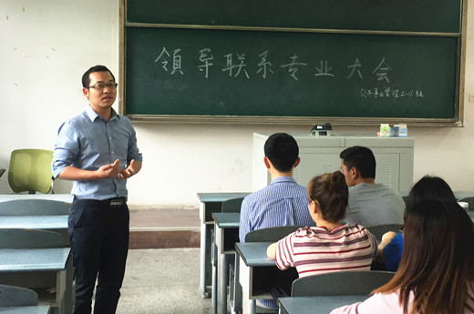 為加強與學生的聯(lián)系,助力學生的生涯目標規(guī)劃,4月22日下午,經(jīng)濟管理學院副院長鄭小強在博學樓B202開展了領導聯(lián)系專業(yè)活動,公共事業(yè)管理2016級全體學生參加會議。