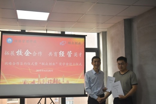 據悉,為支持經管院學子,聯眾創業連續5年每年出資2萬元設立“聯眾創業”獎學金,專項用于獎勵經管優秀學子。