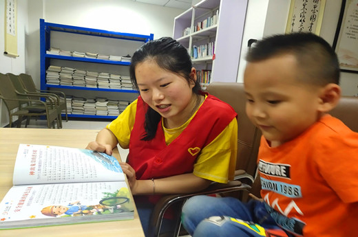 臨近六點半點,小朋友們都陸續到齊,然后和其他小朋友一起學習。幫他們拿喜歡看的書籍,和他們玩猜謎等。七點左右,來得早的孩子的家長將孩子接回家,剩余的孩子繼續學習。七點半左右,孩子們都學習累了,志愿者們便想辦法使他們放松,和他們做小游戲,舒緩疲勞的大腦。