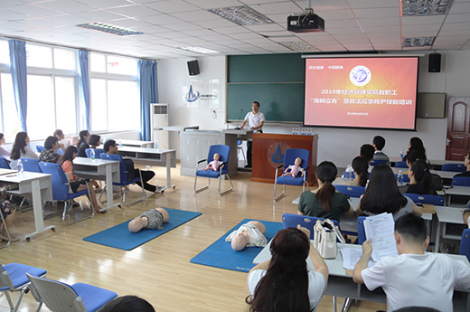 為提高經(jīng)管院教職工的安全防范意識,增加他們的醫(yī)療知識儲備,6月20日下午,由校工會和校醫(yī)院共同承辦的“海姆立克”應(yīng)急技能培訓(xùn)會在博學(xué)樓B404召開,校醫(yī)院住院部主任鄒劍戎擔(dān)任主講人,校工會副主席黃昌利、經(jīng)濟(jì)管理學(xué)院黨委書記黨劉栓、黨委副書記、紀(jì)委書記曾有為及經(jīng)管院全體教職工人員參加培訓(xùn)。