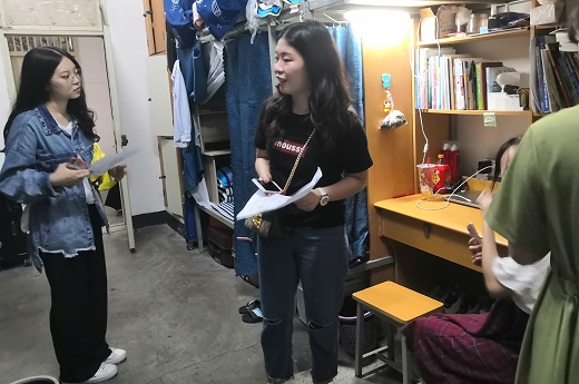 9月1日晚,我院輔導(dǎo)員嚴(yán)旭和兼職輔導(dǎo)員顏欣藜走訪了18級(jí)會(huì)計(jì)學(xué)、電子商務(wù)和市場(chǎng)營(yíng)銷三個(gè)專業(yè)的學(xué)生宿舍,排查宿舍安全隱患,針對(duì)《學(xué)生手冊(cè)》最新修訂情況對(duì)同學(xué)們進(jìn)行了叮囑。