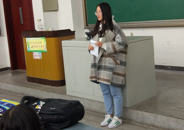 隨后,兩個專業(yè)共計六位班長上臺分享了這學(xué)期以來,擔(dān)任班長這一職務(wù)的酸甜苦辣。班長們動情的講述著半年來發(fā)生在各自班級的一些事情,一路走來遇到的有委屈也有開心,有誤解也有支持,他們紛紛表示:愿意做大家四年的班長!為大家的學(xué)習(xí)生活保駕護航!而高分子二班的劉玉涵作為唯一的一位女班長,也是巾幗不讓須眉,以自己獨特的風(fēng)采贏得了在場同學(xué)的掌聲。