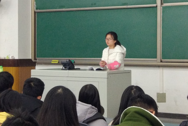 大會伊始,馬老師詢問了近期同學(xué)們學(xué)習(xí)、生活等方面的情況:“期末考試復(fù)習(xí)的怎樣?”、“室友相處是否和諧?”、“四級考試后感想如何?”……這一個個問題凝聚了馬老師對同學(xué)們的深切關(guān)懷和美好期望。