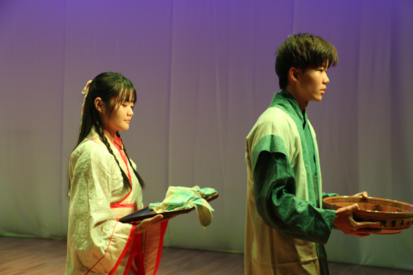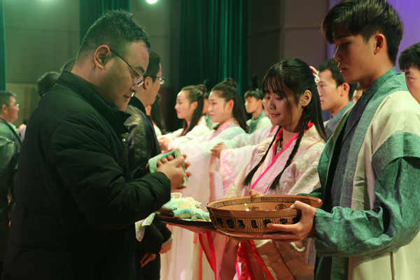 在晚會(huì)的眾多節(jié)目中,“班導(dǎo)生秀”和“漢服成人禮”是晚會(huì)的高潮。在我們的成長路上,除了父母之外有無數(shù)的人在陪伴著我們,這些從入學(xué)伊始便一直陪伴著我們的班導(dǎo)生,不嫌枯燥的為我們解答各種問題,陪伴著我們迎接這成人的時(shí)刻,直到我們能夠在大學(xué)里獨(dú)立自主的解決問題,遇事不再毫無頭緒,直到我們由一名中學(xué)生成長為大學(xué)生。他們用熱情的互動(dòng),告訴大家,成長路上,他們從未離開。如今,我們盛服走向十八歲,必須用心去體會(huì)別人為我們的付出,感恩,需要我們用心去詮釋。