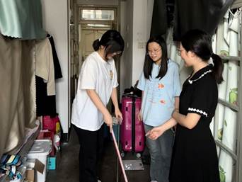 活動中,學工隊伍深入寢室一線,嚴查衛生死角,針對地面清潔、物品收納、床鋪整理等細節進行檢查,并現場指導整改。同時,排查安全隱患,全面清查違規電器使用、私拉亂接等寢室安全問題。此外,為深化勞動育人內涵,活動創新設置“勞動教育微課堂”,以“工匠精神”“鐵人精神”等為切入點,通過案例講解引導學生理解勞動價值,強化“懂勞動、會勞動、愛勞動”的理念,將思政教育融入生活場景。