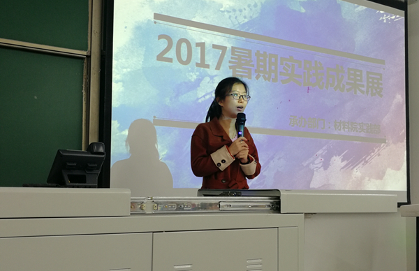 當代大學生,不僅要學習理論知識,更要注重實踐,將知識應用到實踐中,鍛煉自我,服務社會。為幫助更多的人走進實踐這個大課堂,我院于11月10日晚19:00,在明德樓A401成功舉辦了2017年暑期社會實踐成果展。我院17級學生輔導員老師馬潔參加此次成果展,并于開場致詞。在致詞中,馬潔老師贊揚了參加暑期實踐的學生吃苦耐勞、勇于實踐的精神,并鼓勵在座的全體學生積極參與暑期社會實踐。